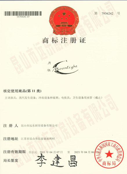 - 崑(kun)山市(shi)遠(yuan)東櫥(chu)房設備(bei)有限(xian)公司(si)——“月華(hua)”商標註冊證(zheng)